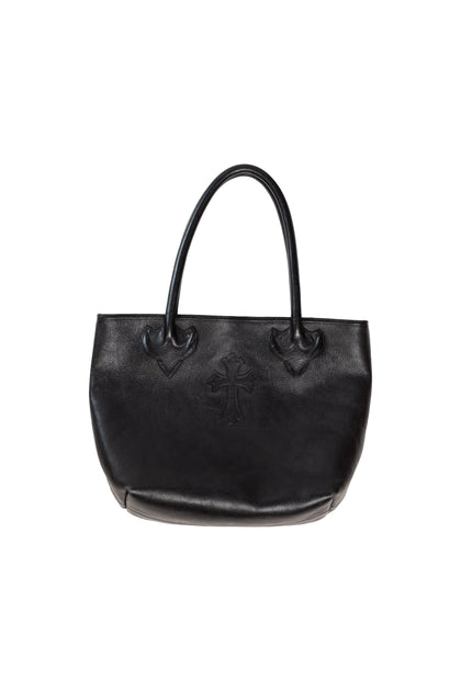 Black Cross Patch Leather Tote Bag