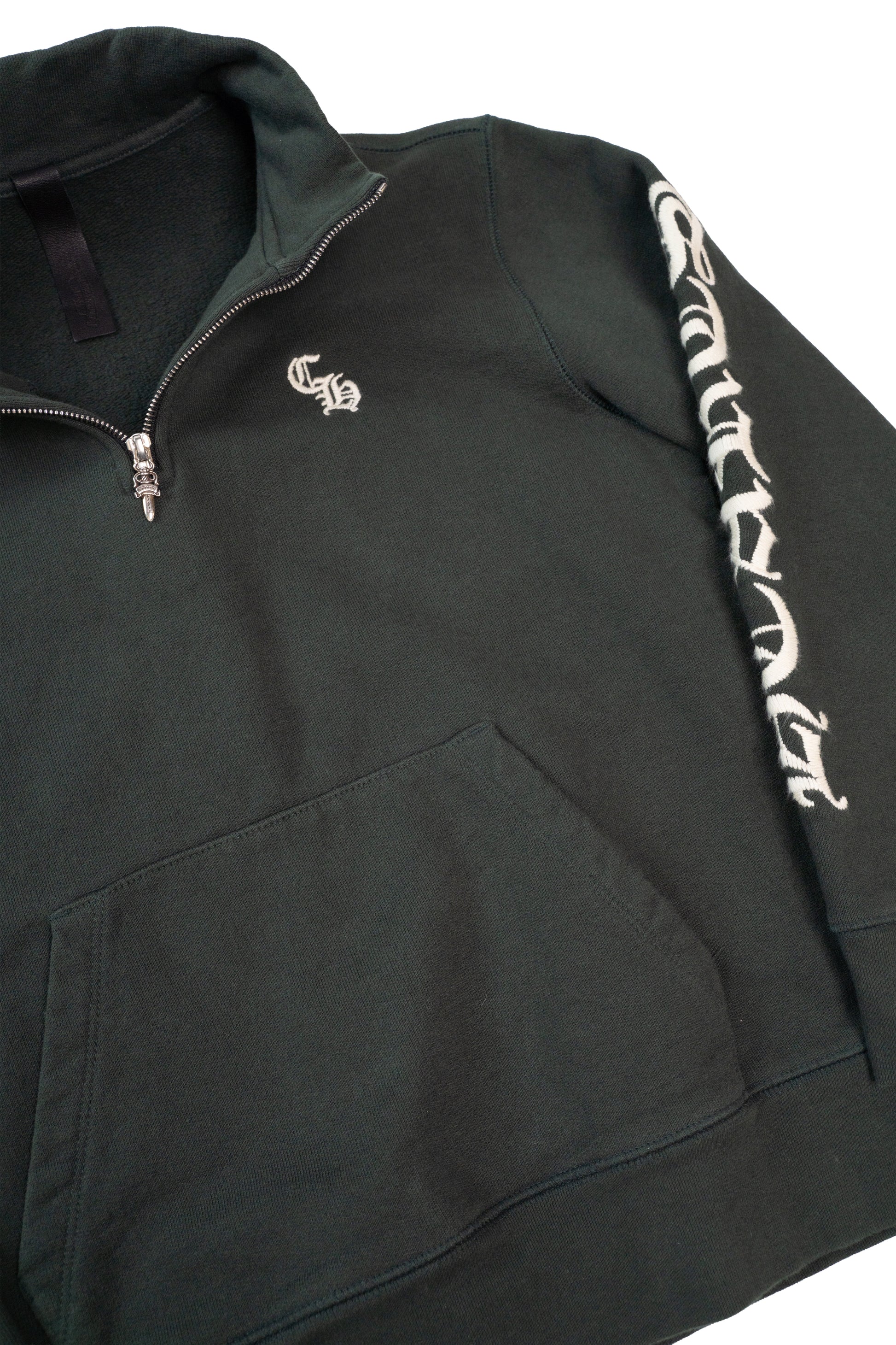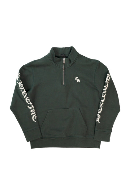 Script Logo Embroidered Half Zip Dark Green Sweatshirt