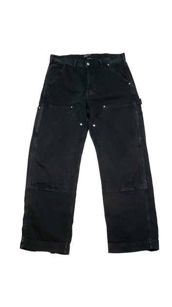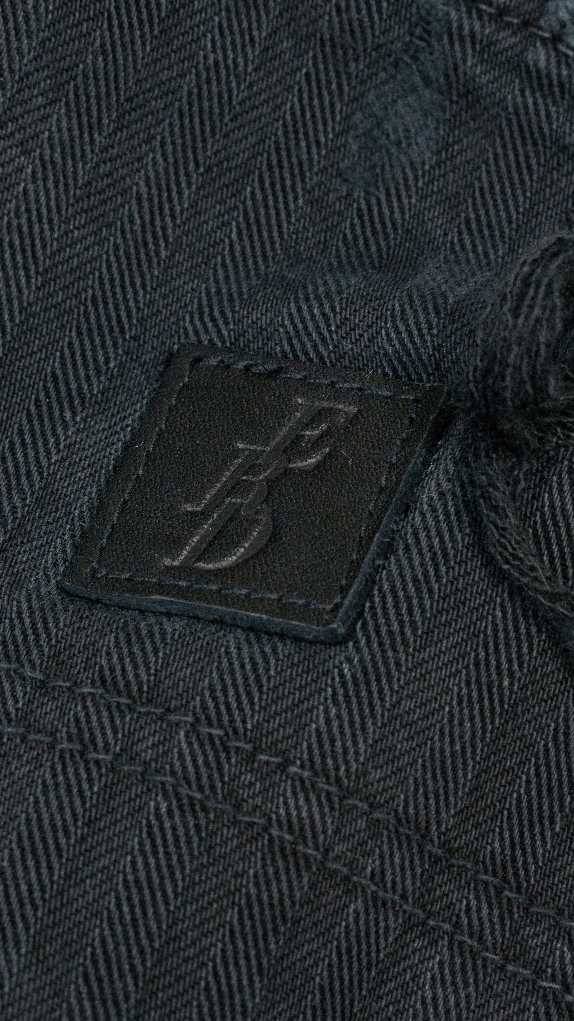 Straight-Leg Distressed Paneled Herringbone Denim Trousers